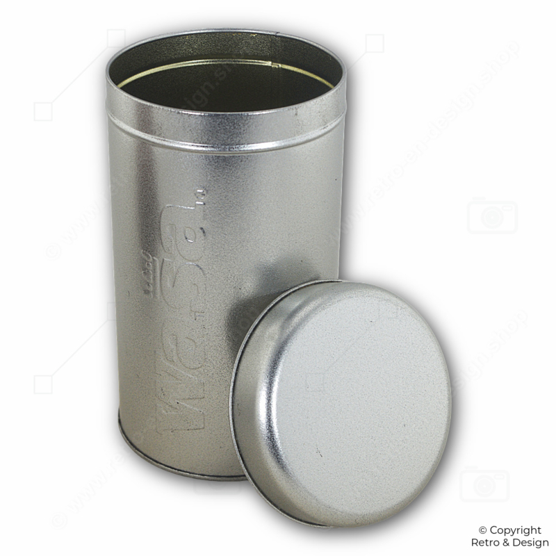 Eine runde, zylindrische Metalldose, ursprünglich zur Aufbewahrung von Wasa-Knäckebrot entworfen.
