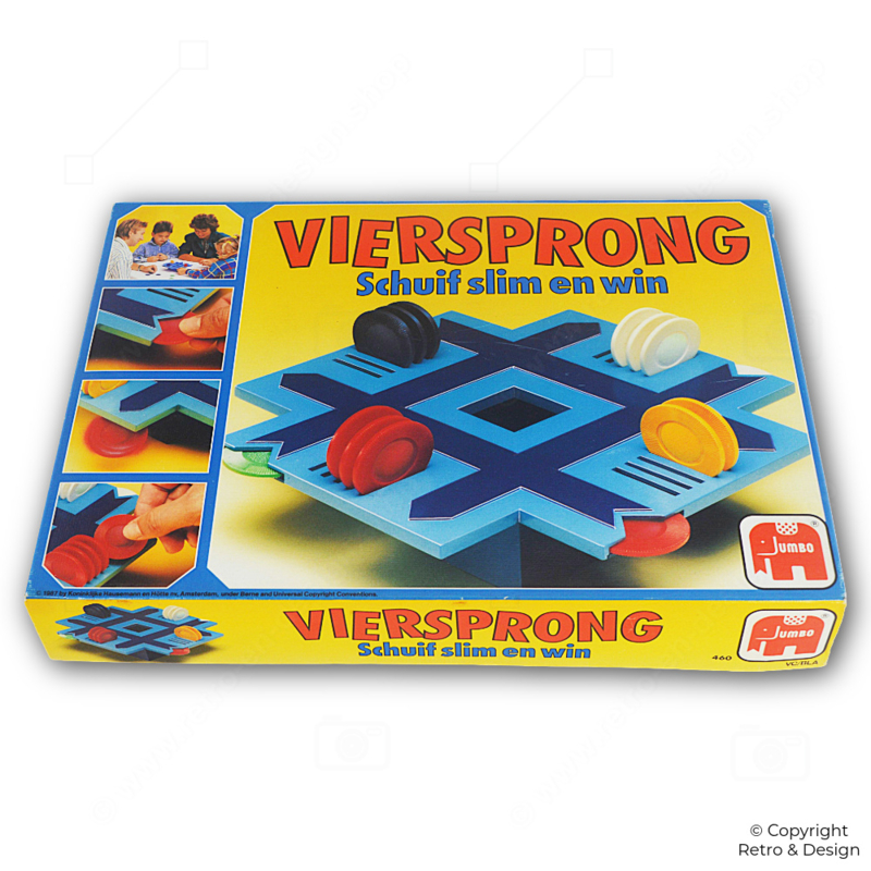 Jumbo wurde 1853 von Engelbert Hausemann gegründet und entwickelte sich zu einem führenden Spieleverlag. Bekannt durch Klassiker wie Stratego, Ludo und Pim-Pam-Pet, erhielt das Unternehmen 1978 den Ehrentitel „Königlich“. Viersprong ist ein hervorragendes Beispiel für Jumbos innovative Spielideen der 1980er Jahre.