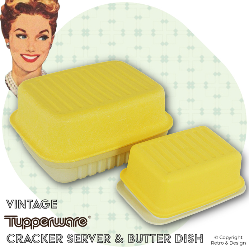 • Charmante Vintage-Tupperware Küchenaccessoires aus den 1980er Jahren: eine Käsebox und eine Butterdose.